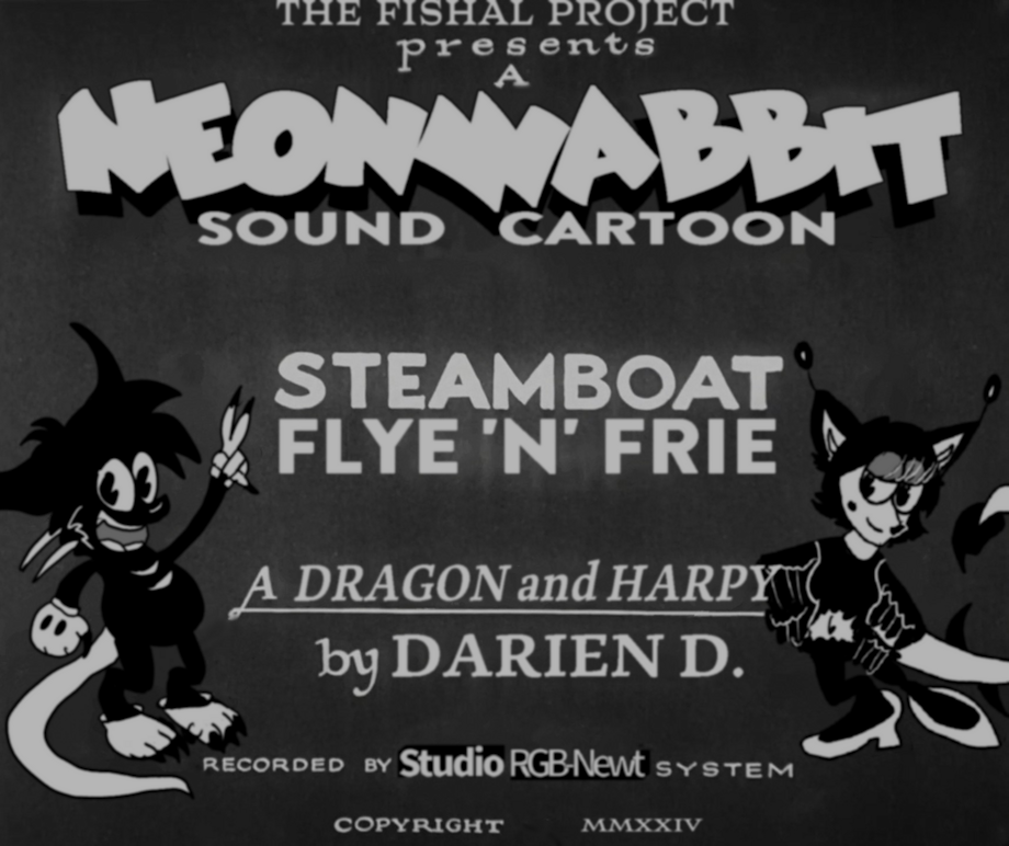 This is a title card for "STEAMBOAT FLYE 'N' FRIE", based on the title card of some random work found in the public domain.