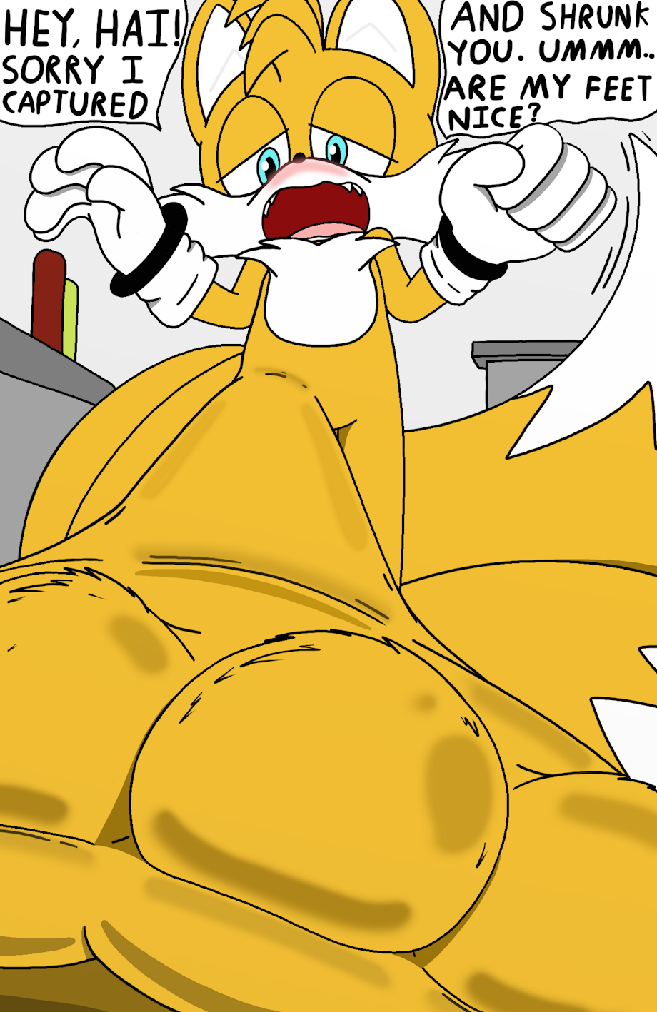 Looks like Tails has captured you and brought you to his lab for a quick little experiment. He's noticed Sonic at one point in their time together looking at Tails' feet so he shrunk you down, took his shoes off and wanted to know if you yourself like them as he puts them directly in front of your face because Mobians and their huge feet.