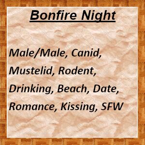 “Ehehe… right… Well, uh, come on, out the back.” Tony led the group through the house to the back door, which let out directly onto the beach. Several yards away, a tower of wood burned merrily, illuminating a tall, shirtless, black-furred sable. The marten clearly worked out, but he was still only three-quarters of the size of Marco, and stood slightly shorter.