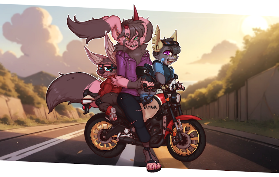 Ai backgrounds are an interesting way to use it with traditional art. I think it might require overpainting in some places, but the only issue I see would be the difference in resolution between the lines you drew and the lines it made. It would be a lot easier to deal with if Ai could produce layers. I can get why it took so long though, gosh are motorcycles hard to draw, but you did a great job!