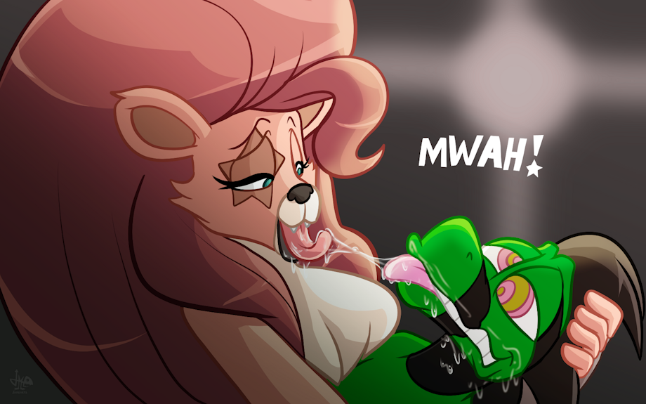 Apparently i've never drawn him getting smooched by Lennox before, good excuse to bring this popstar OC of mine back from the grave >:D