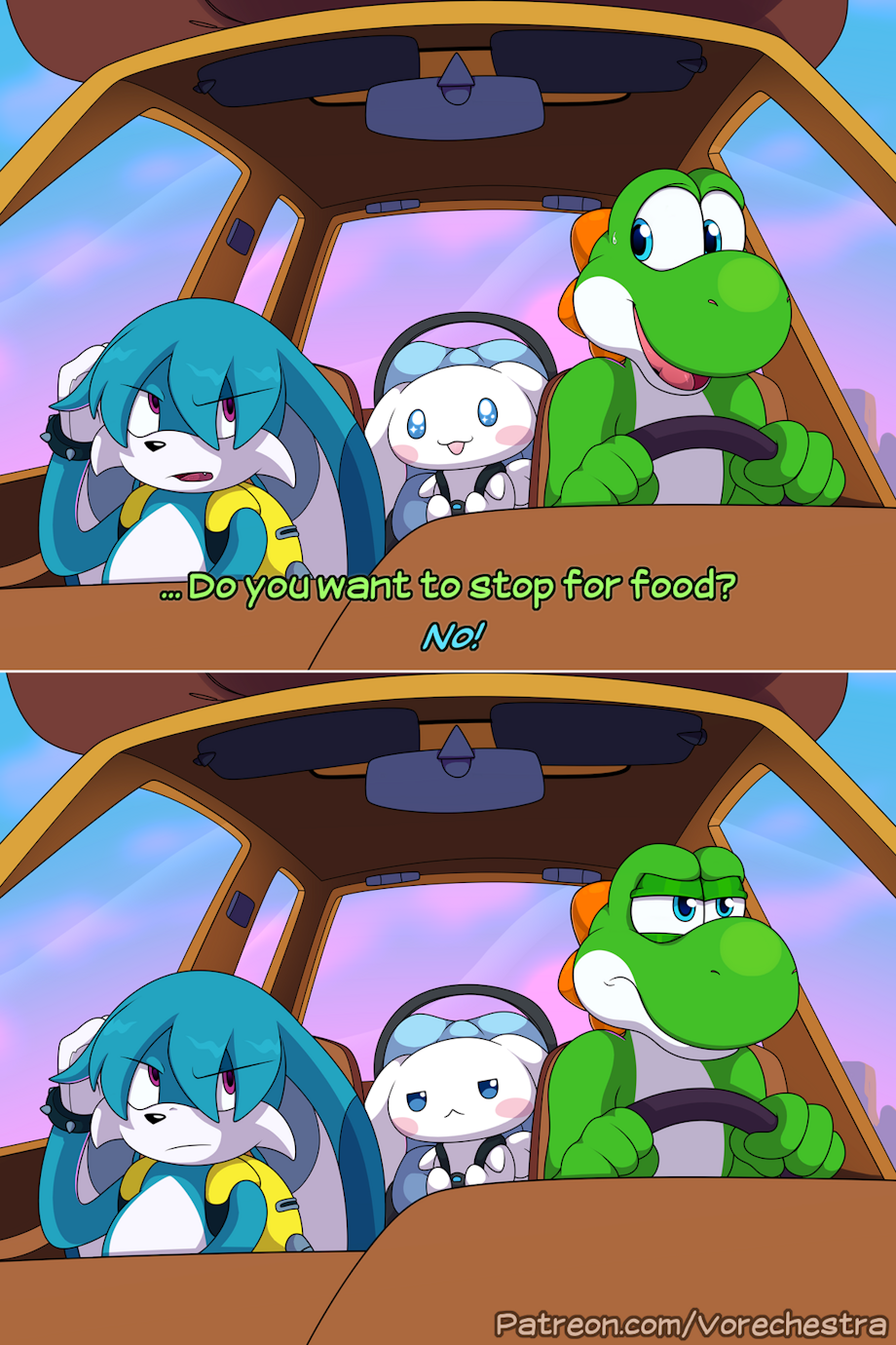 This was a meme making the rounds on Twitter, like a "Draw the squad like this." It specifically said to pick comfort characters, and I have like... 10? So I loaded them into a list randomizer and these 3 were the first picks. We almost had Rayman and Dinobot in the car :p Maybe next time!