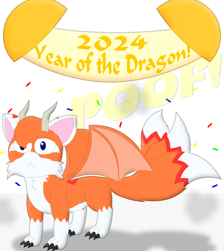 HAPPY NEW YEAR TO EVERY-*Poof!*... one?... What just happened? Wait. I'm a dragon now!? For Year of the Dragon?... This isn't going to become a ongoing thing now, like Skunktember, is it?