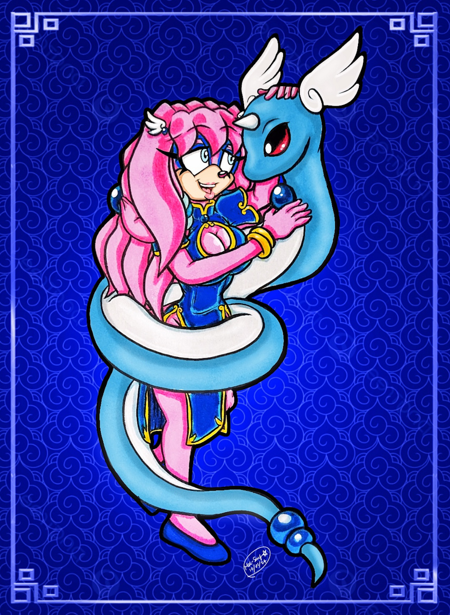 Sky with my favourite Dragon type Pokémon Dragonair. 🥰