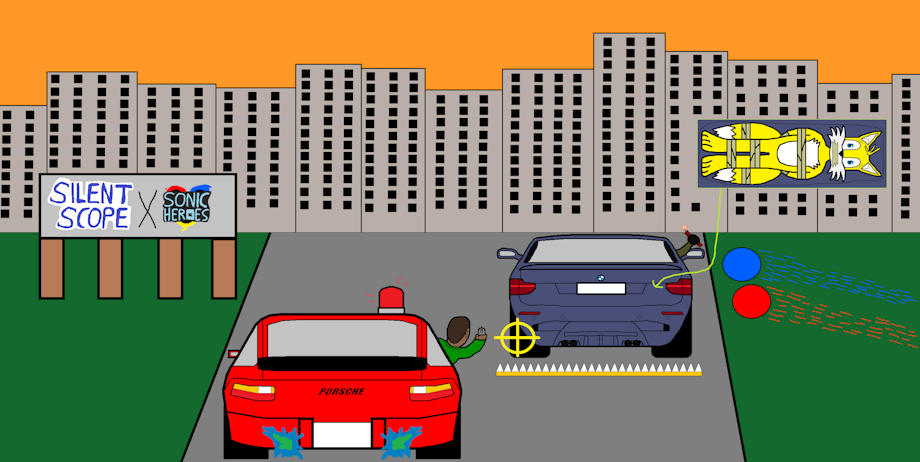 I added Silent scope (Konami) X Sonic heroes billboard road as an easter egg crossover.