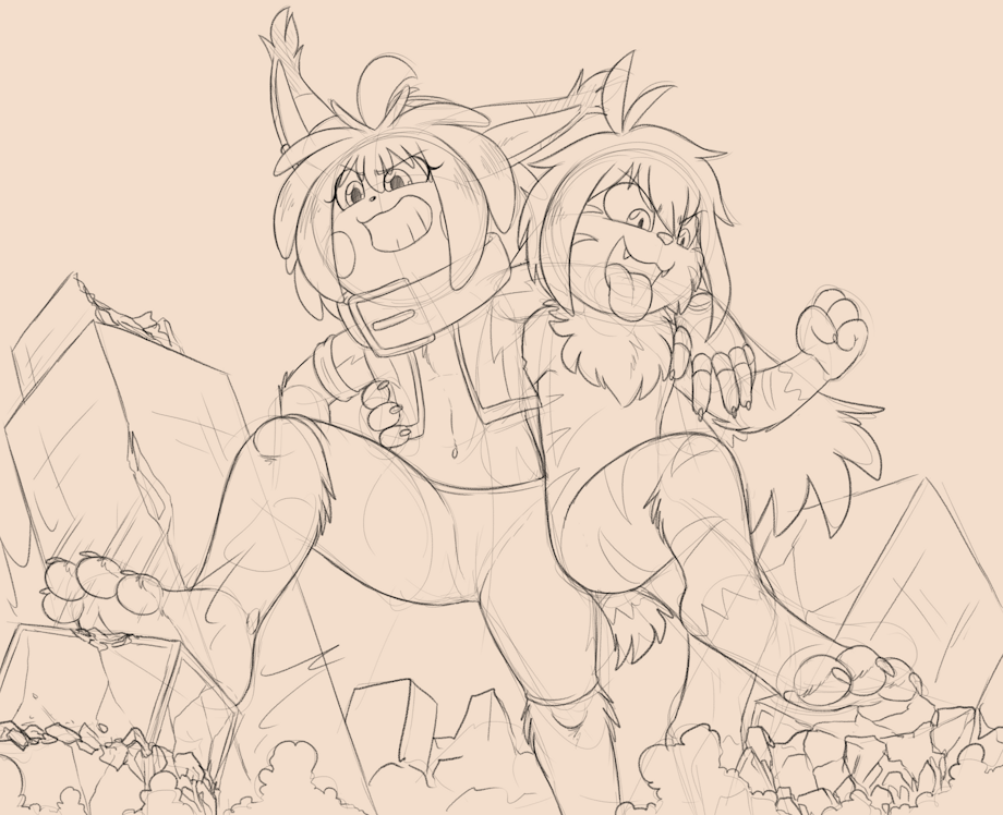 Commission for Maniko, just me and him having a good ol' rampage together :3