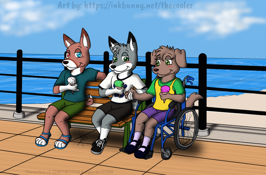 Gonna keep this version here you feel free to upload yours too since I am gonna upload here all SFW commissions for this year! Happy you liked the 3 pups on the bench by the Beach!.