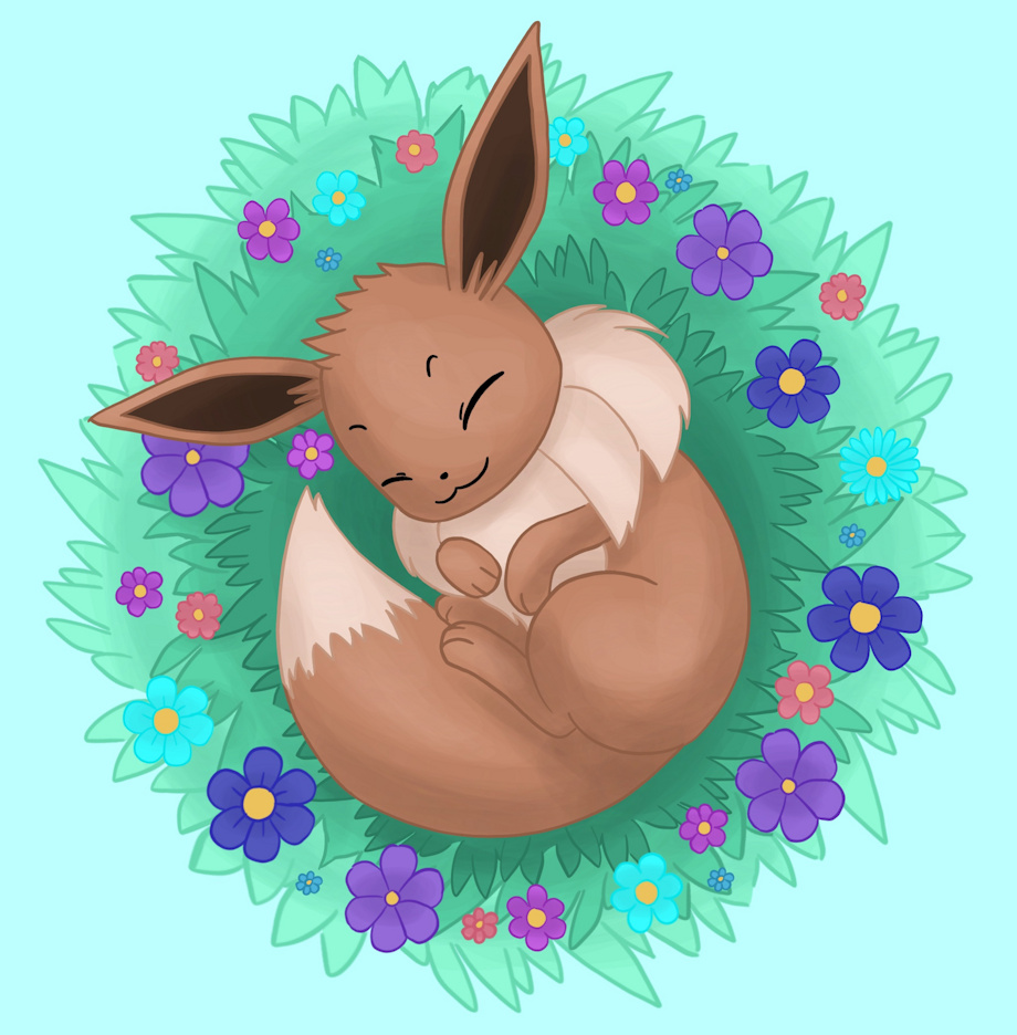 #pokemon #eevee #cute #kawaii #procreate #pokémon #gittacatchemall #flowers #sleeping #adorable #rug #rugmaking #tufting #tufted #tuften