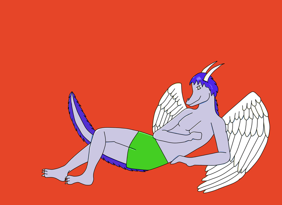 Rune Takashi is a feathered dragon. So for his birthday I drew his fursona. I have so say I hope I don't do wings again for a long while that was annoying