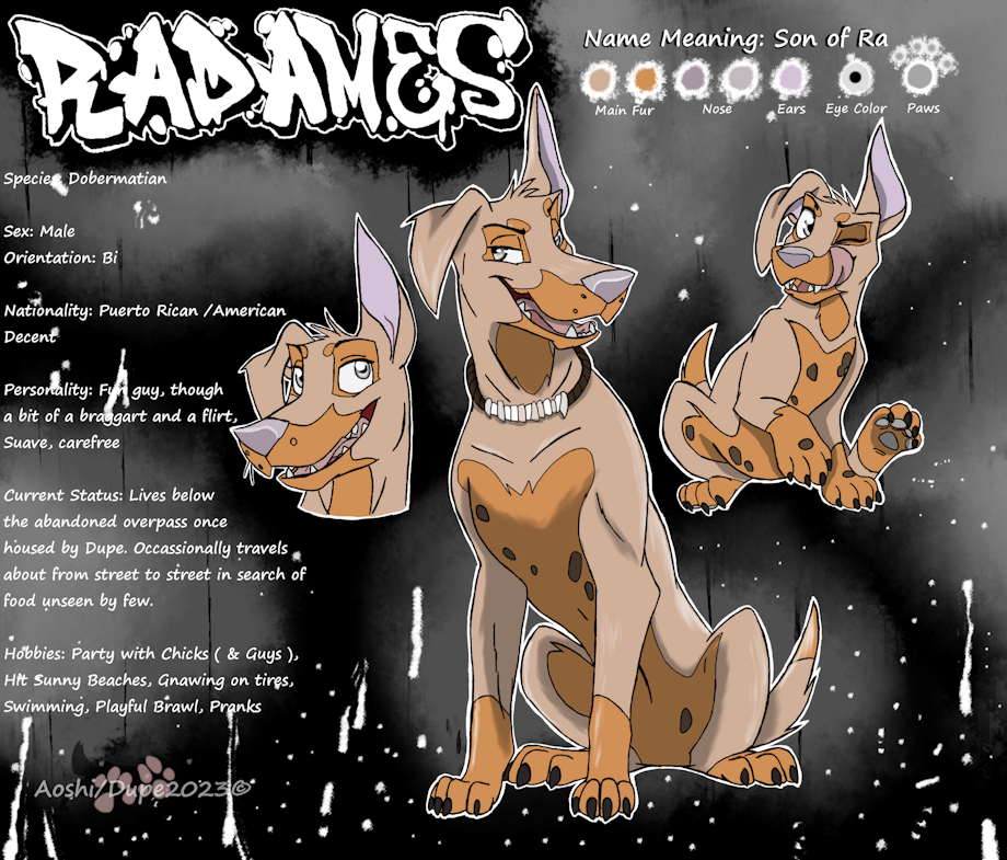 for years that I figured why not make my very own Dobie but with slight unique pedigree. He's a Bona-fide Street mutt who's got the moves and is quite flirtatious especially towards dames and on rare occasions, males too. Make him feel welcome, yo!