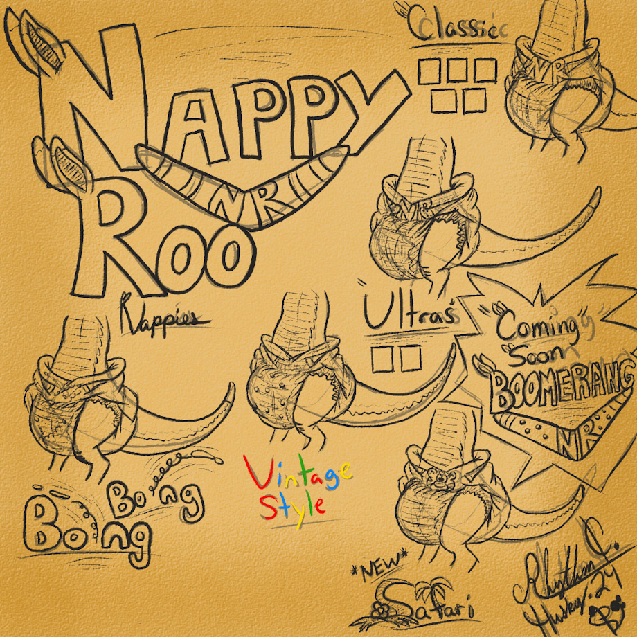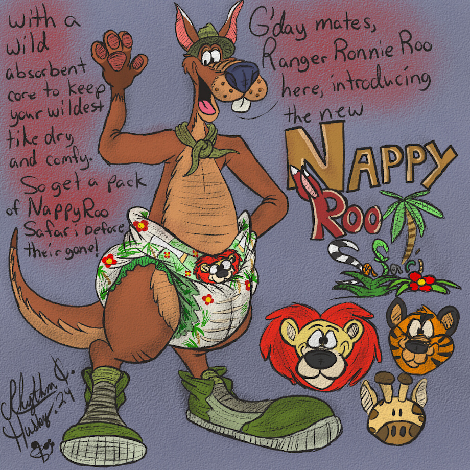 Well Since you like the Nappy Roo Safari diaper drawing I made here is the catalog drawing of the Nappy Roo Brand.