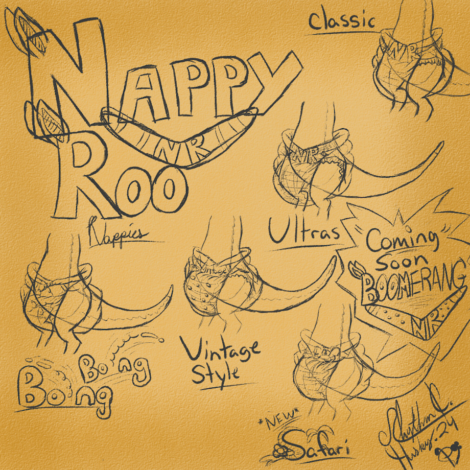 Well Since you like the Nappy Roo Safari diaper drawing I made here is the catalog drawing of the Nappy Roo Brand.