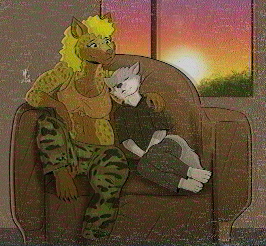 Beowulf100 on FA drew this picture back in 2018, however the artist rockosedits digitally edited this picture for me, so it creates the illusion of fuzzy VHS screen-cap from animated film or a tv show that could be from the 90s. I am very pleased with this result.