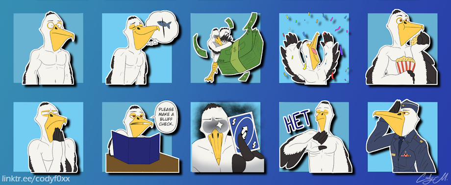 Yep. The bird dude is back, and wanted 10 more stickers :D Was super fun to do >:D
