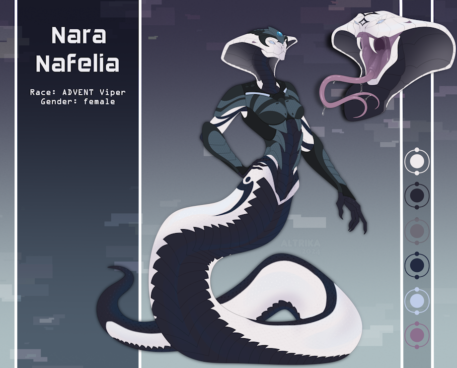 Personality: Nara is friendly for the most part although she does have some issues with certain things like speaking with humans and ADVENT aliens she is somewhat reserved to new people human or alien Nara’s first instinct is not to kill unlike her vipers she usually won’t share her deep thoughts or opinions to a stranger but will open up if she get to know them,
