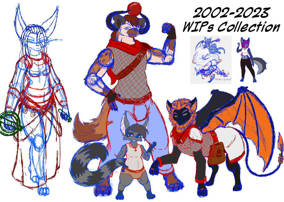 Product storepage link, https://terithsart.gumroad.com/l/fogrd Collected package of all WIPs produced from mid-2022 to the end of 2023. Contains 546 otherwise unreleased to the public images. Includes Vore and other NSFW content.