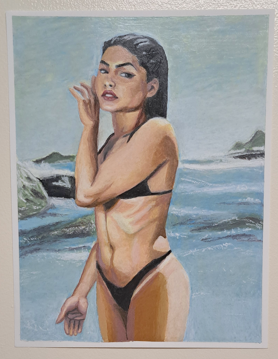 Woman Posing At The Beach, Oil Pastel Painting on Bristol Paper. Varnished. Signed on the back as Plentifoal