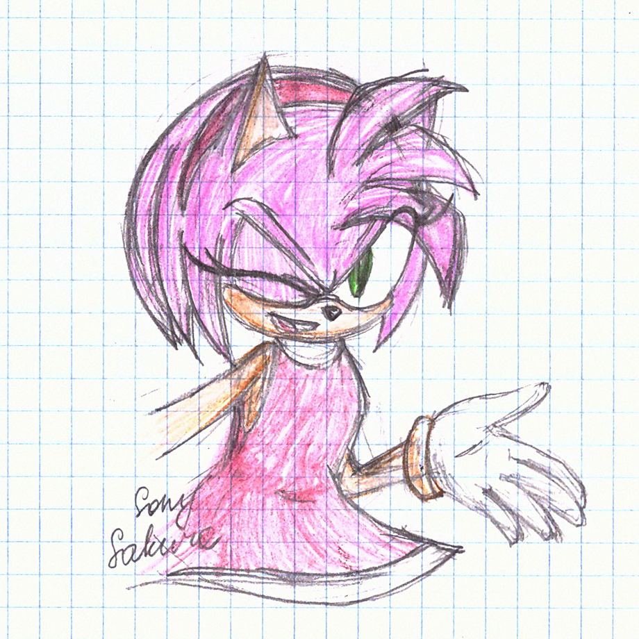 Amy Rose sketch made from memory with what was lying around on another teacher's desk; administering exams is boring...