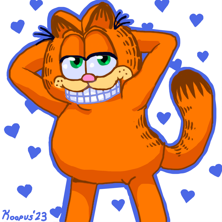 So I practiced doodling some semi sensual or teasing Garf poses with my trackpad.
