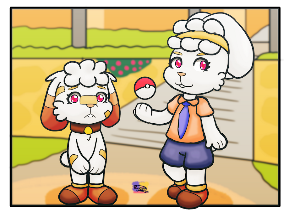 Lynda has the ability to change her form thanks to a magic necklace, from rabbit to Scorbunny.