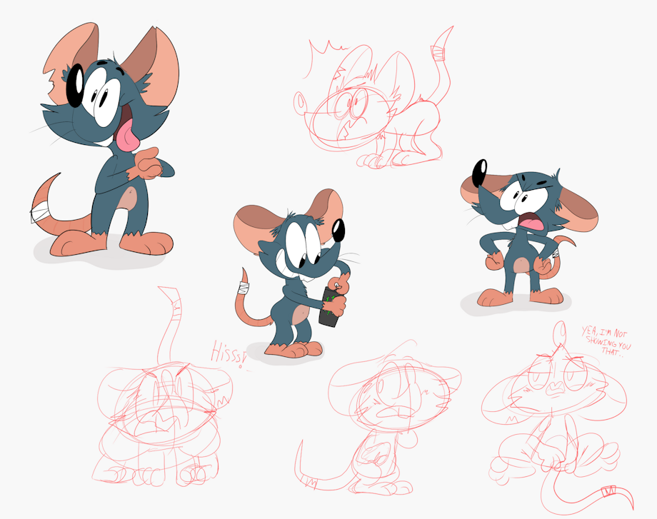 Not a bad design and I like the expressions you give him. Sort of giving me the Furrball vibe maybe because of the bandaged tail.