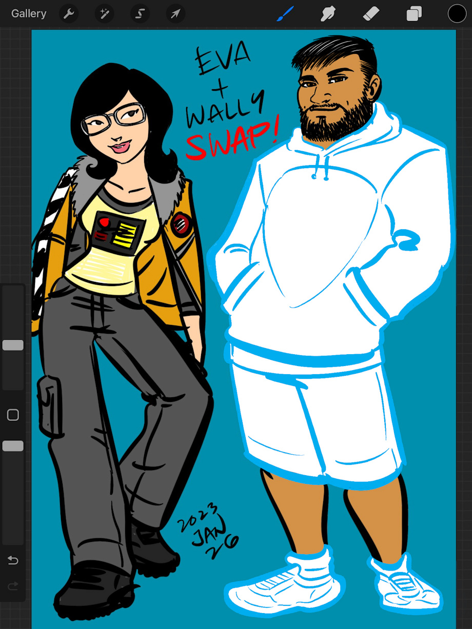 Tried drawing our Twitch avatars Eva and Wally swapping clothing styles. Please support our Twitch channel EvaWally! I stream every Wednesdays at 10pm PH time!