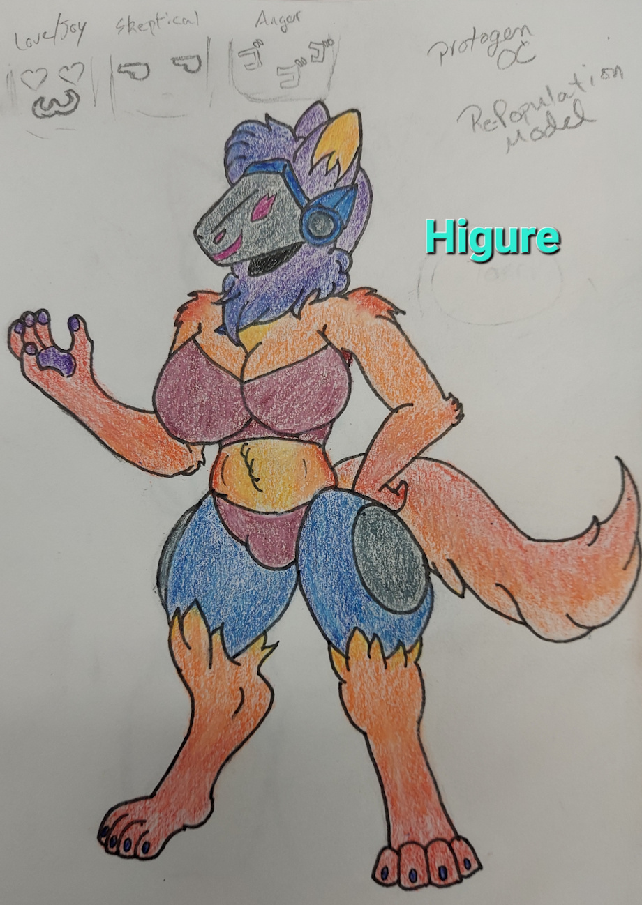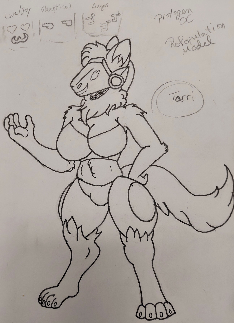 This is a protogen oc I've been inspired to make. You can blame YouTube and certain furries on VRChat lol. Anyway I'm still debating on a couple things...one..hir name (in the circle you can see "Tarri" but I'm not sure I like that so most likely will change) and hir colors. I've seen soo many protogen be dark colors so I may go with lighter..maybe softer hues. Any thoughts would be appreciated
