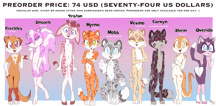 PREORDERS ARE 74USD EACH AND ONLY AVAILABLE FOR 24 HOURS! Bidding starts 24 hours after preorders, in a separate submission. Regular bids start at 21 USD, minimum increment is 5 USD and autobuy is priced at 53 USD.