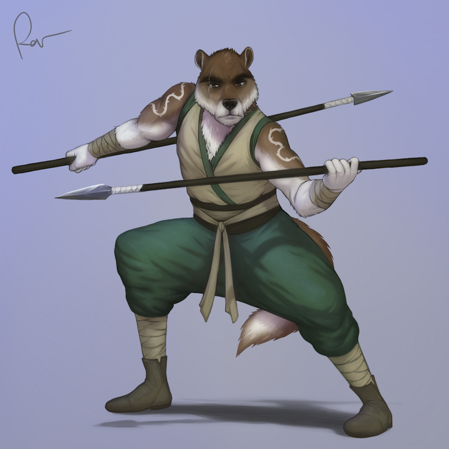 This one would be a stronger bandit with battle experience, not just a regular thug! He is part of the bandit clan, roaming the lands and pillaging to survive from time to time. Despite being a bandit, he's still a proud warrior and specialized in close and midranged combat with spears. Thank you so much for this commission, I hope you're happy with the final result :)