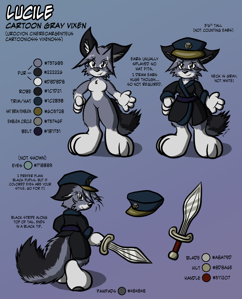 Her full name is actually Lucile Virmir (not to be confused with Lucile Urocyon from Crimson Flag), however because Virmir is so awesome he is referred to by his last name and I often get Lucile and Virmir drawn together, I figured putting this tidbit on the ref sheet itself would be extremely confusing. ;)