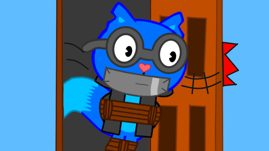 Somehow Alex ended up bound and gagged, and locked in a closet; it seems he was able to bust out of the closet however; but that landing might hurt...