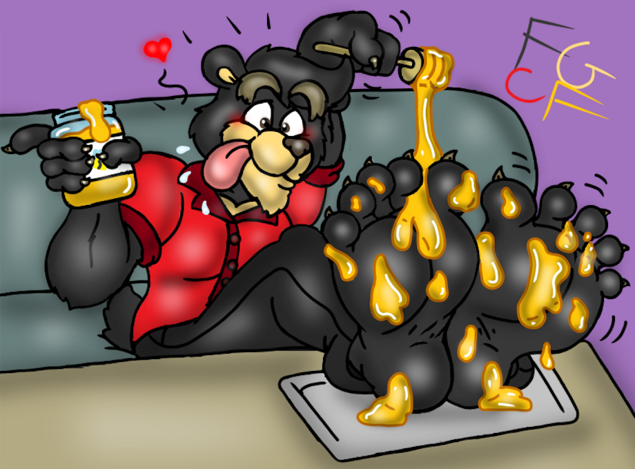 featuring his Black Burr Dennis being a rather silly teddy n drizzling his feets in sweet honey heh.