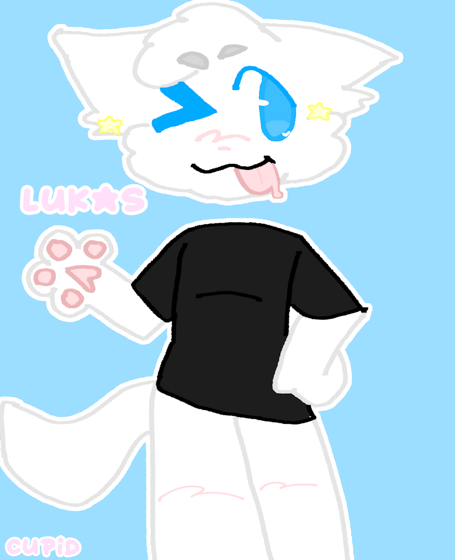 white fur, healed scars from yk, little flood on their head, fluffy tail, and yeah!