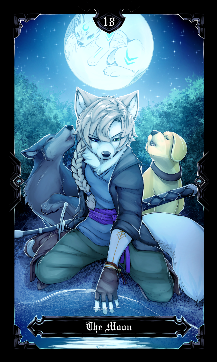 XVIII. The Moon UPRIGHT: Illusion, fear, anxiety, subconscious, intuition REVERSED: Release of fear, repressed emotion, inner confusion