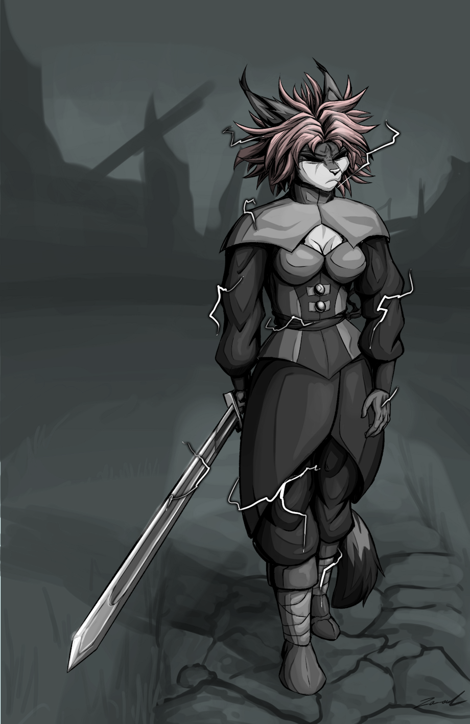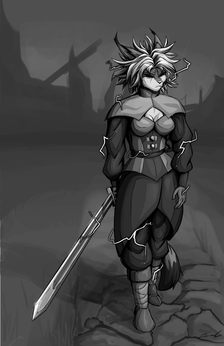 Slightly dramatic and edgy grayscale rendering of Elwyna. I wanted to experiment with this slightly comicbook/manga looking style. I got inspired from a previous piece when I was playing around with different filters.