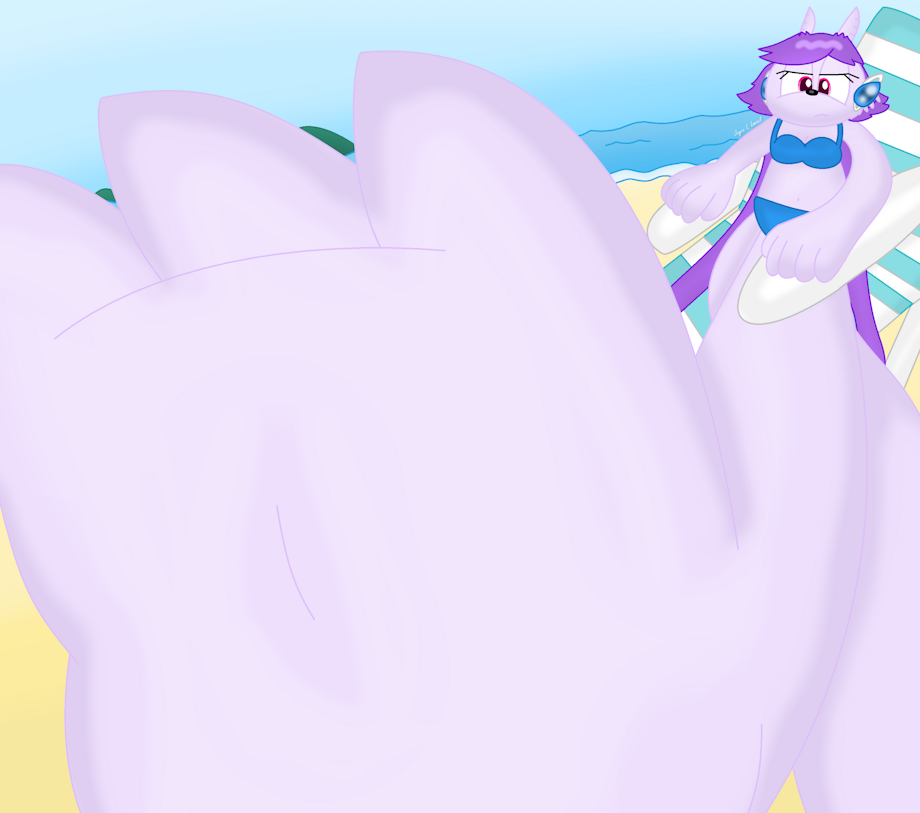 Haven't uploaded anything foot-related in a while... and this was in the backburner for almost a week now. Just Sash Lilac chillin' at the beach, showing off her massive water dragon paw. Either you shrunk or you're looking at it from below, probably the former. But I'll leave the interpretation up to you. ^^