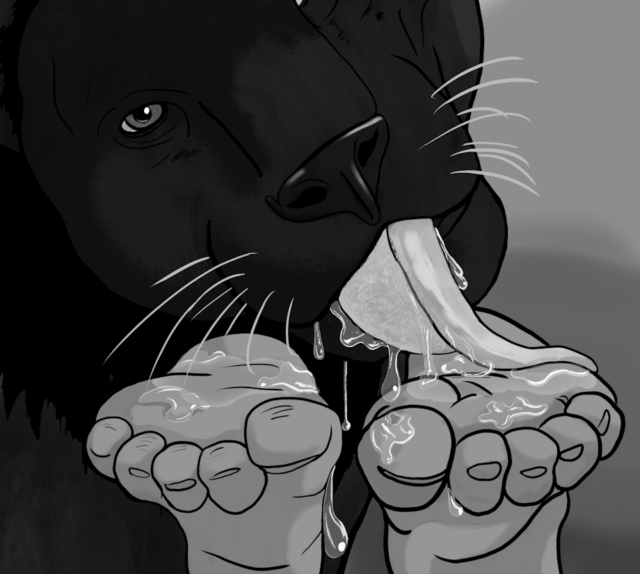 Bagheera Licking Mowgli's Feet Yum BW Commission