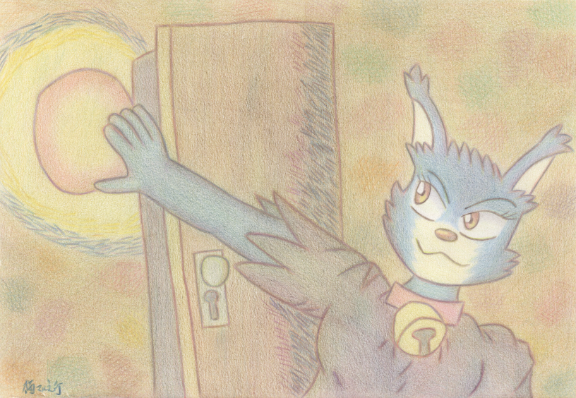 I draw my bat boy character Kuraresu with fullmoon and night background and I draw this art in 2013. I remember I draw this art on new smooth paper, but the taste is subtle different from my usual paper, the color become deep and smooth, and I love the position of the moon and his pose.