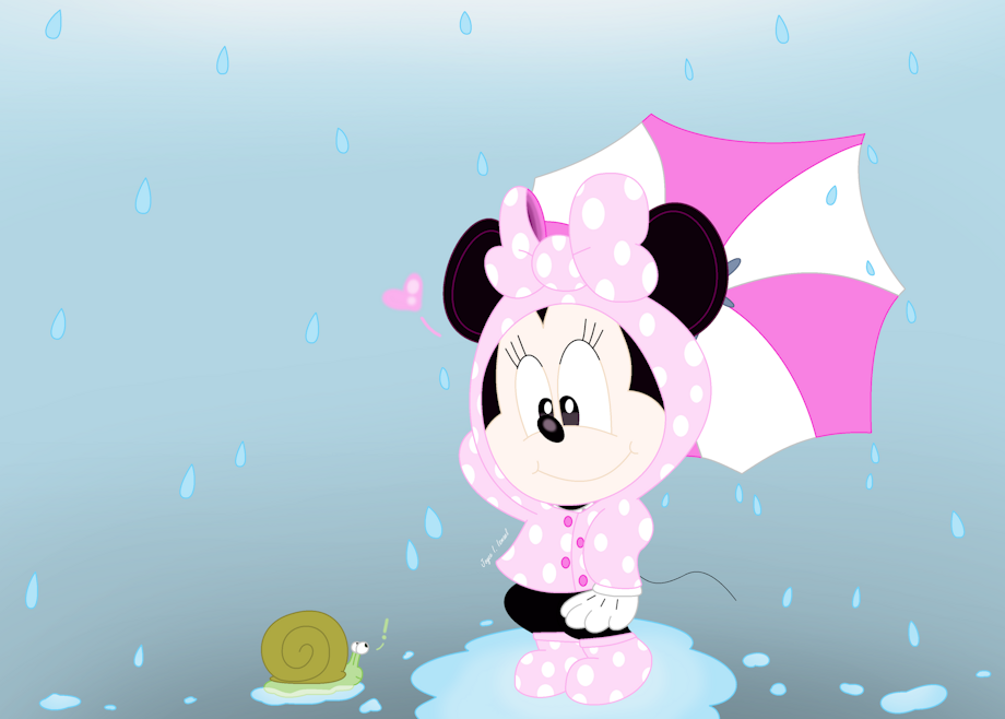 Inspired by an AI piece I found on Facebook, I decided to draw Minnie Mouse in a raincoat for the heck of it. And I tried to make it as wholesome as possible where she looks down at a snail while carrying her umbrella. Adorable, right? ^^