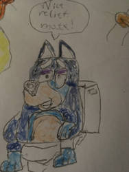 Bandit Heeler taking a dump on the dunny