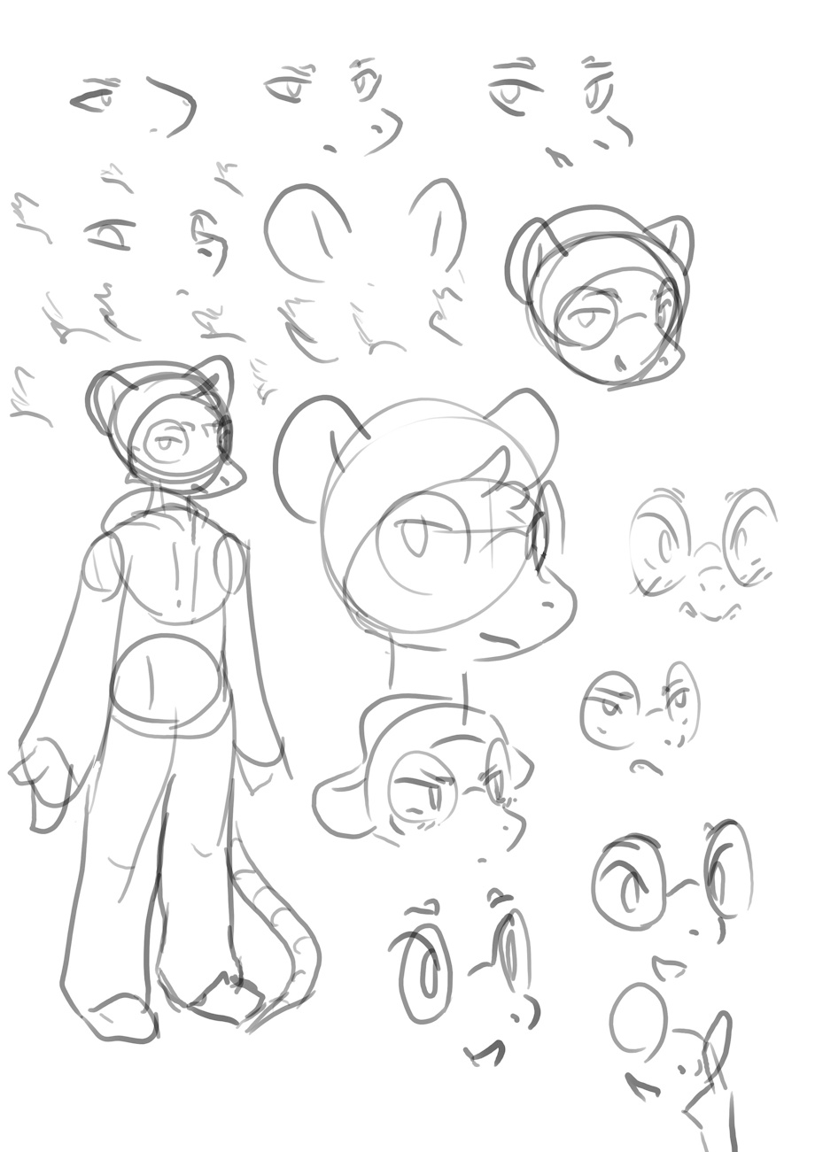 Felt like drawing a bit of my possum here today zwz also took it a bit more slowly, still just drawing whatever I feel next wherever the last doodle or my thoughts take me, but using a little bit more undo. Trying to keep my whole body in mind--posture, the tension and flow in my arm, etc.--as I draw so I can keep myself more fluid and not fall into mindless habit of throwing my arm at it over and over until I see what I like. And I got to do some full-body stuff and clothing stuff sorta, so that's cool uwu