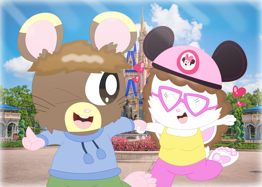 Happy birthday to my one and only Hammy hubby, SinanJuke !! I decided to draw our fursonas visiting Disneyland, and I wish I could go there as well. He turns 24 this year, same age range as I am. Again, hope you enjoy your birthday gift, Hammy. ^^
