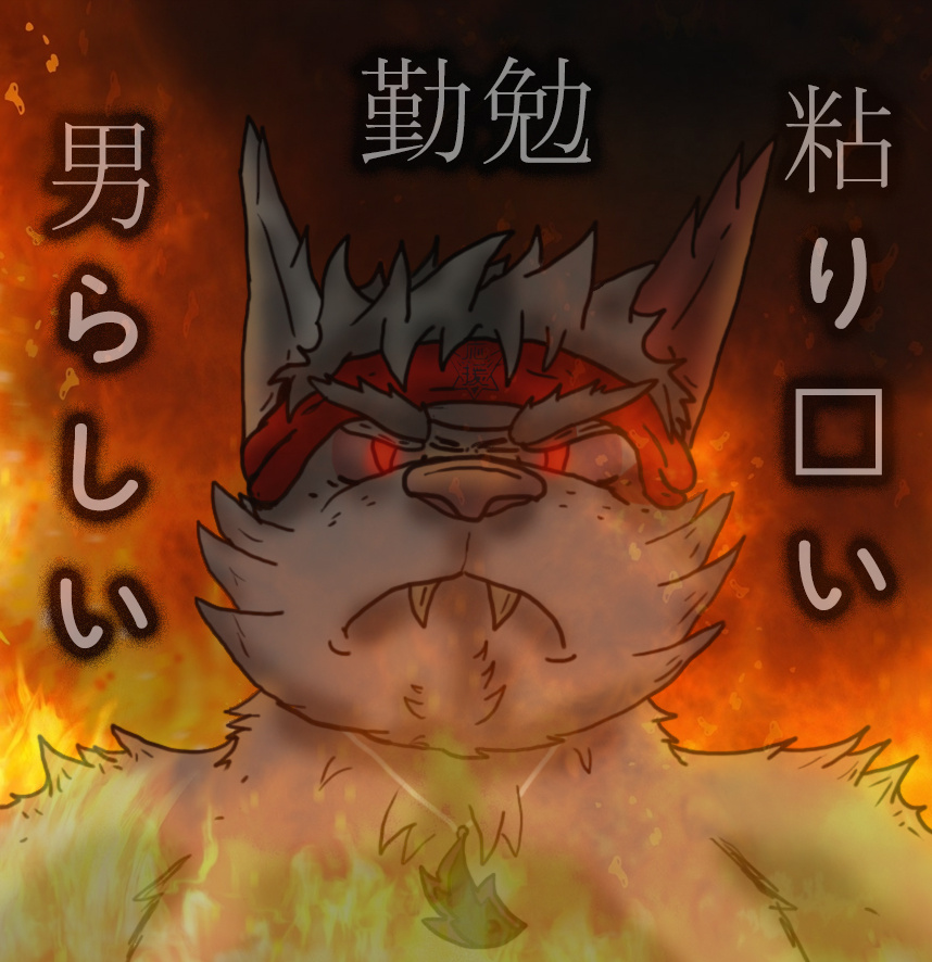 (The characters say... MANLINESS! DILIGENCE! TENACITY! All things needed to be a cool masculine art kitty!)