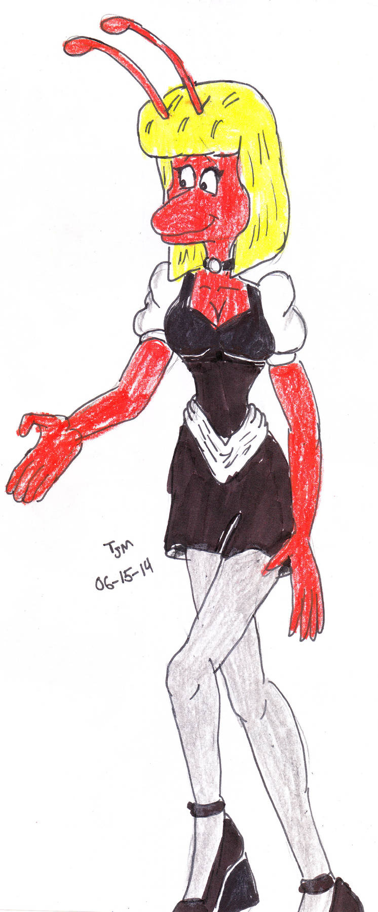 This is Sharon Formica a waitress in Phoebe Burger's restaurant. She is an ant of Formica genus. Sharon is technically the head waiter of the restaurant. She is dressed in the uniform of Phoebe's Restaurant. She is currently dating Katydid Rhapsody.