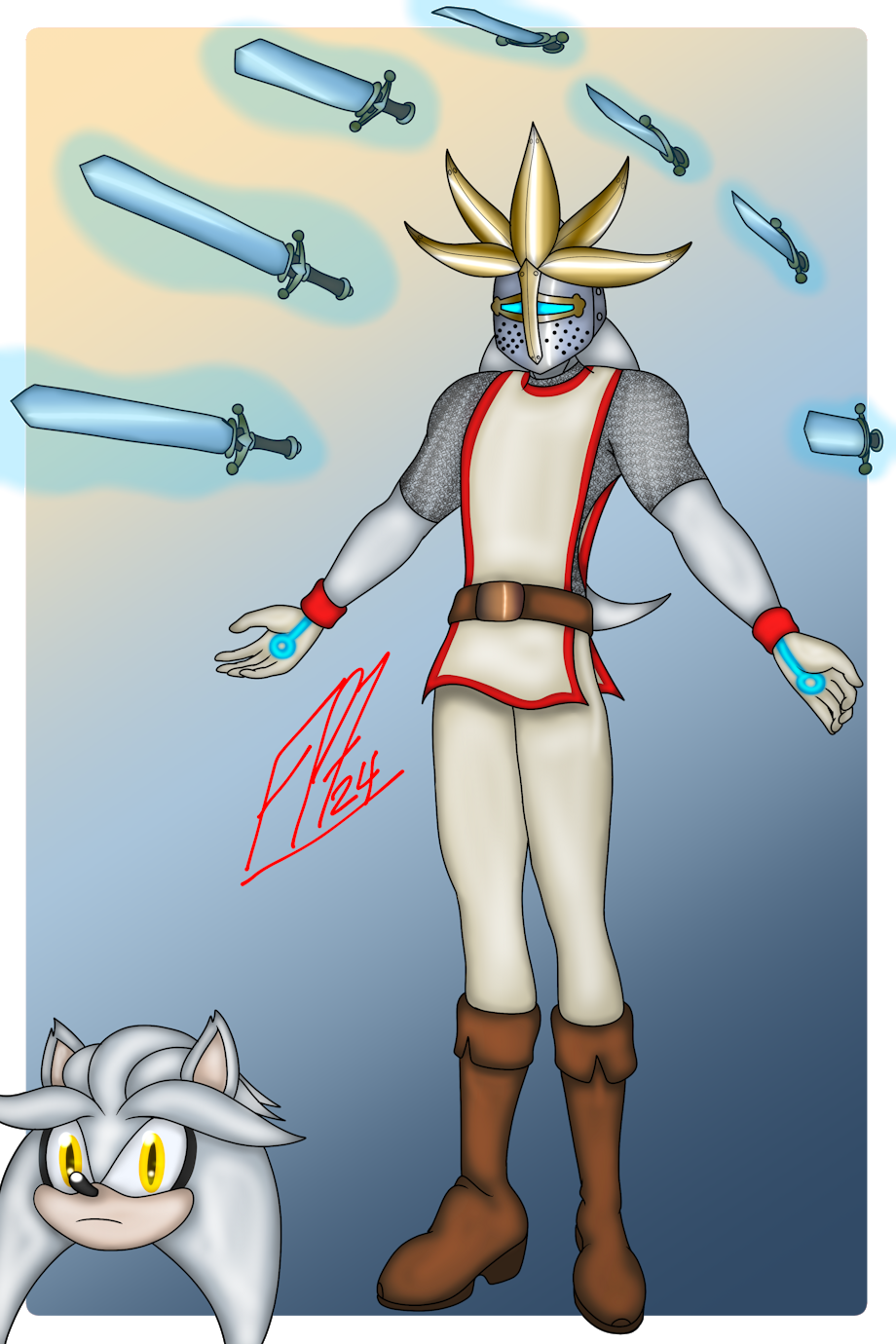 "I Own Nothing" For Capn'Codpiece's Story we have Silver, a descendant of Shadow, and a member of a convent, who has come to become a knight, while also protecting fellow convent member Gold, who came for other reasons. While his potential is great, he stumbles often due to his over-eagerness to become a heroic knight. At Five Foot Seven Inches, he may not look like much but he holds great Psychokinetic Powers within him.