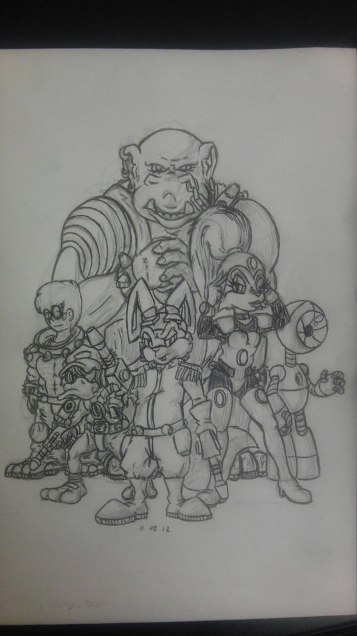 Left to Right : Willie Duwitt, Dead-Eye, Bucky O'Hare, Bruiser(in back), Jenny and Blinky.