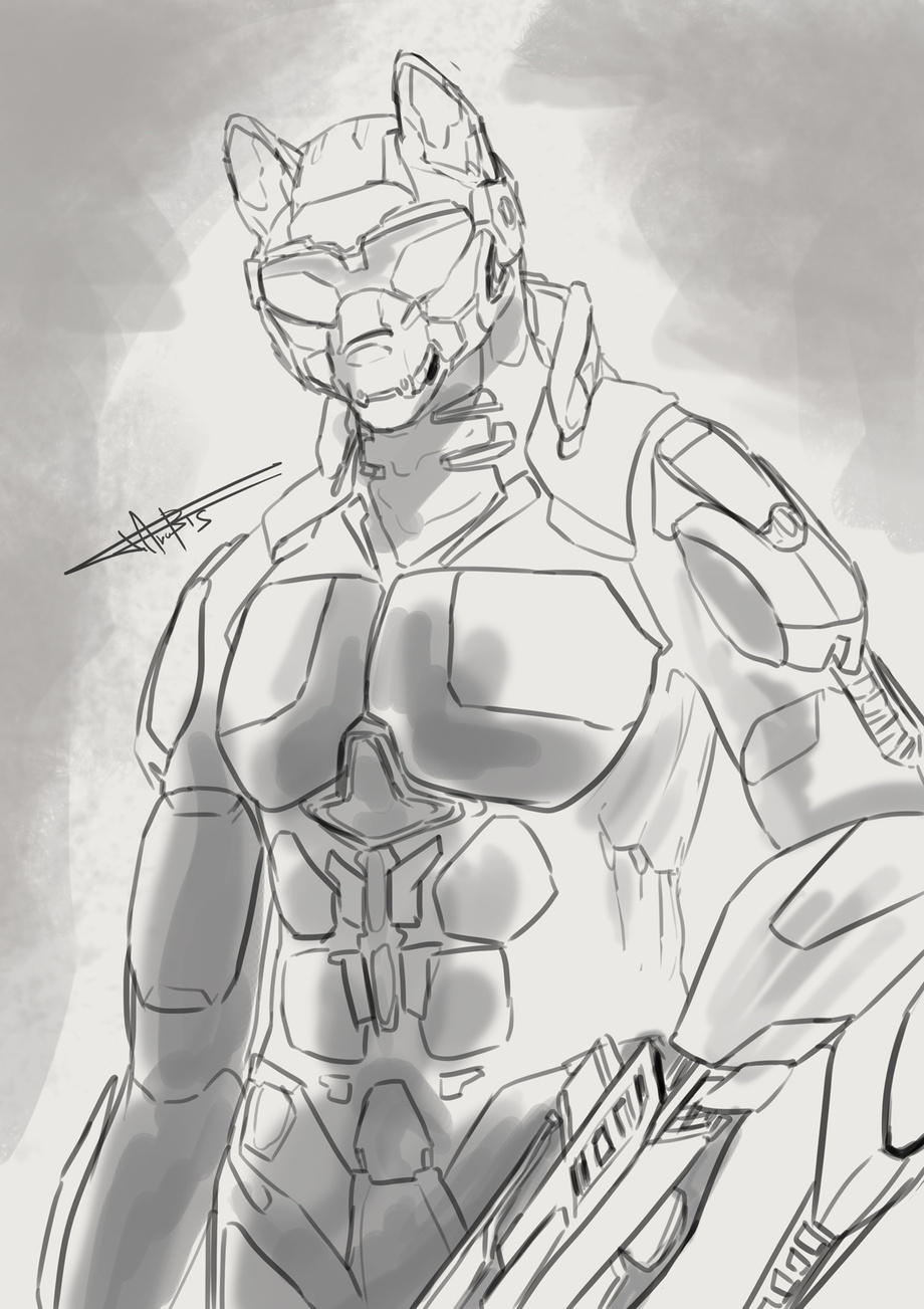 Sketch of Teise, a character of my webcomic. Mysterious, gentle... and 12 feet tall.