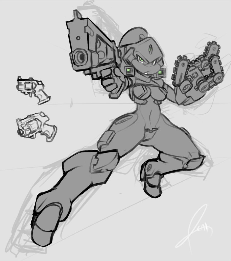 A quick rough sketch of Proxy for a little collab piece. Pistols borrowed some influence from the Chiappa Rhino.