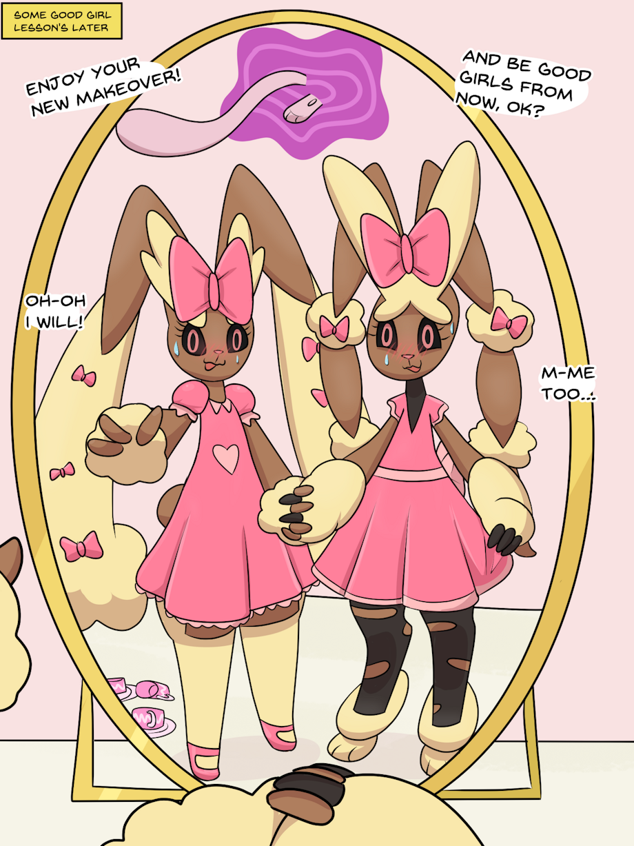 Now that mew has taught the two boys to act more nicer and be good girls like her and after a tea party and pretty make-over, she feels good about helping the pair with their mega lopunny problem.