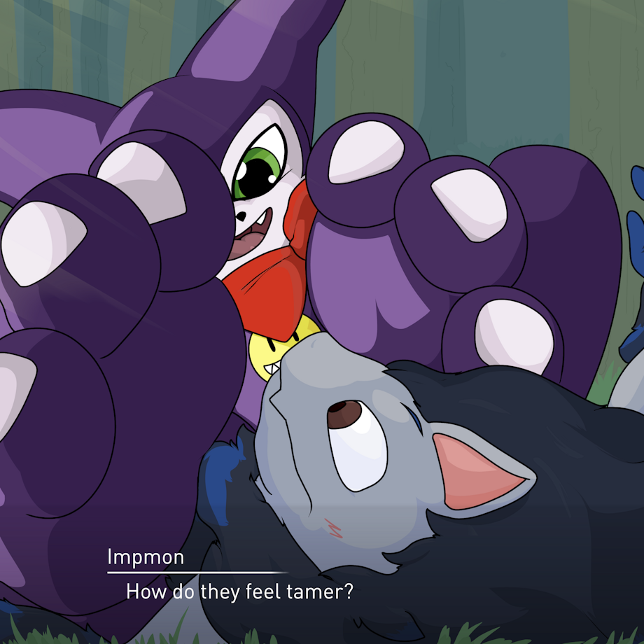Gently frotting them against his face while asking his beloved tamer about this feeling, it was clear that the Impmon knew already the answer to his own question, but he wanted to hear it directly coming him, and he was going to squeeze and rub for that answer until he would spoke his mind about it sincerely.